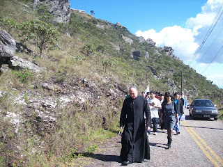 Os peregrinos, de diversas partes do estado, chegaram aos pés da Serra da Piedade as 9:30 e iniciaram a subida sob a benção do Pe. Tarciso.
